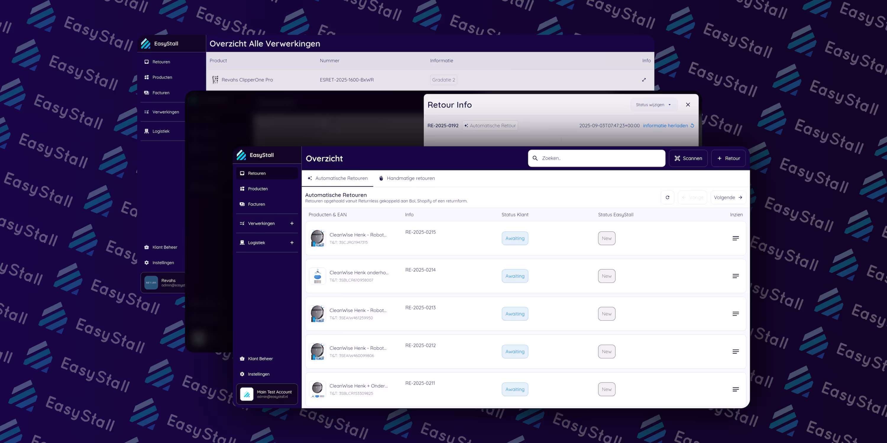 EasyStall Dashboard - Full Stack-platform, authenticatie, cloudfuncties, stripe-integratie, returnless en dashboards voor klanten en beheerders. Gemaakt door Jacobs Development BV